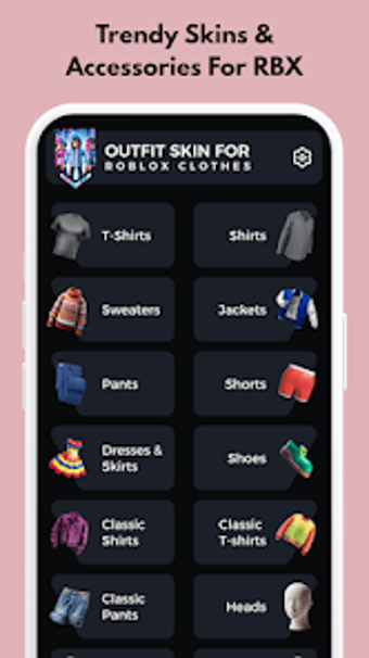 Baddie Outfit for Roblox Skins är en gratis app på Android som erbjuder en omfattande samling av trendiga Roblox-outfits och outfit-ID:n. Denna applikation gör det enkelt för spelare att hitta och använda stiliga kläder, inklusive tröjor, byxor och kompletta outfits, inspirerade av Baddie-trenden. Appen riktar sig till både tjejer och killar som vill att deras avatarer ska sticka ut i spelet. Med ett enkelt kopiera och klistra-in-system kan användarna direkt använda de outfit-ID:n de hittar, vilket gör det snabbt och smidigt att förändra sin stil i Roblox.